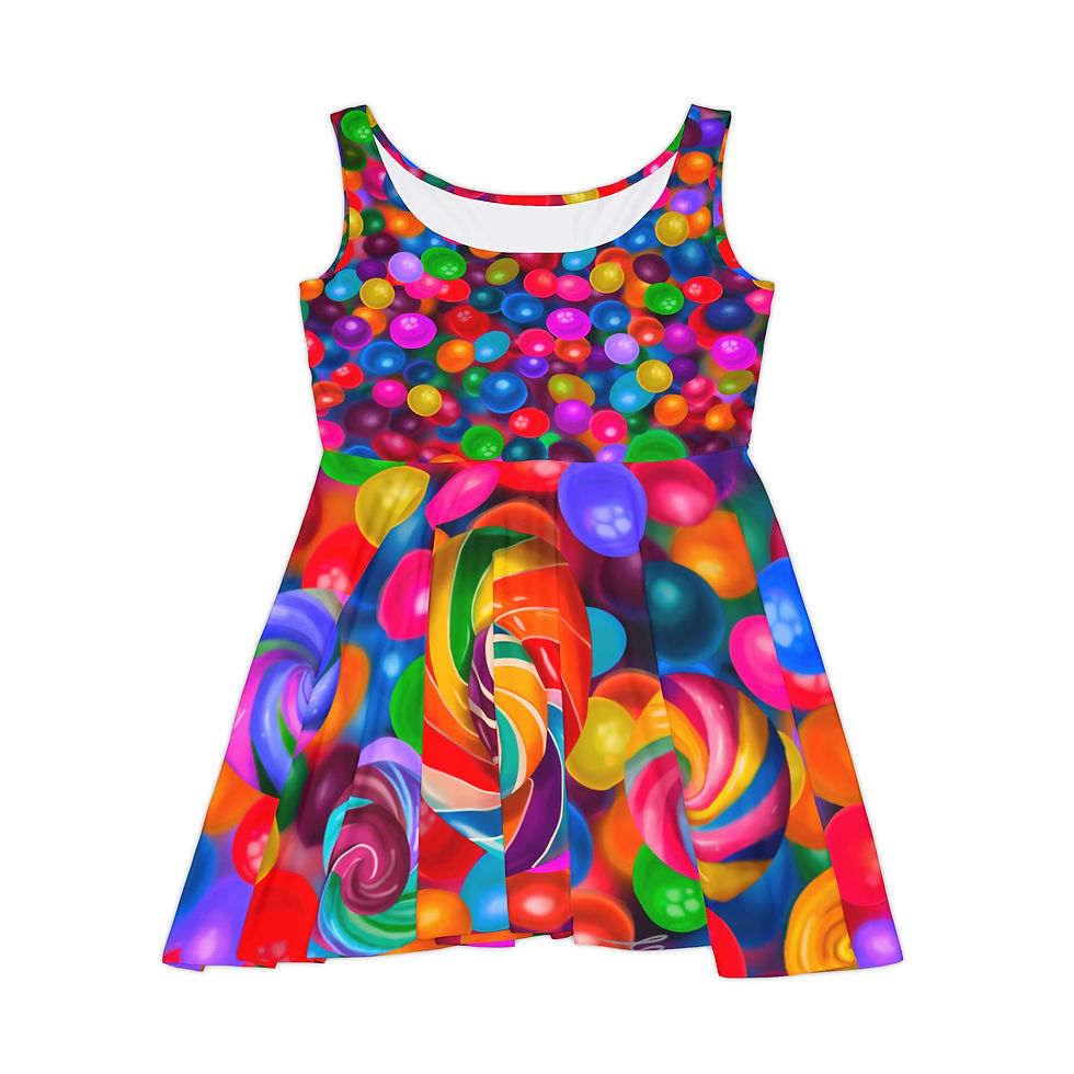 שמלה לנשים בעיצוב מקורי בהשראת הציור של סוכריות צבעוניות בגזרה A
